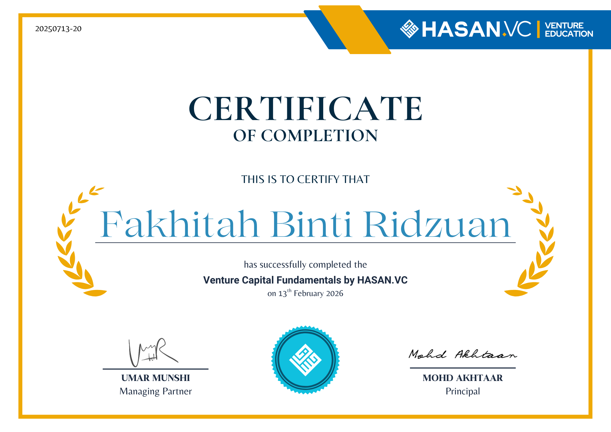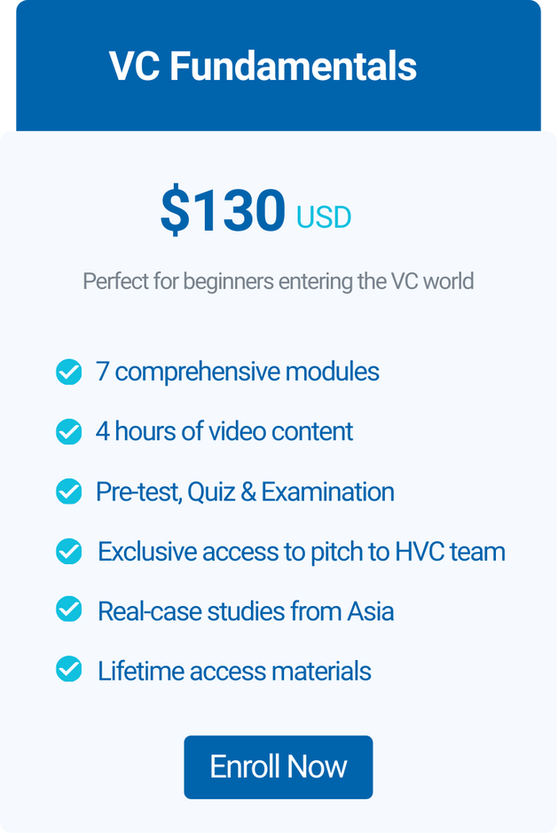 Earn your certification in Venture Capital Fundamentals with HASAN.VC, a leading early-stage investor across Asia. Learn directly from active practitioners through real case studies, gain insights from a shariah-compliant perspective, and receive exclusive access to the HVC Ecosystem.
